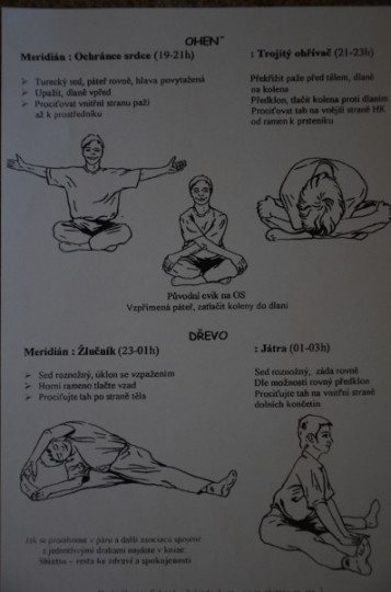 A ještě jeden užitečný odkaz k tomuto tématu, článek z blogu Slunečný život Mii Weissové s pěknými popisy cviků a především jednotlivých meridánů a orgánových hodin pro lepší pochopení významu tohoto úžasného cvičení na naše tělesné i duševní zdraví.